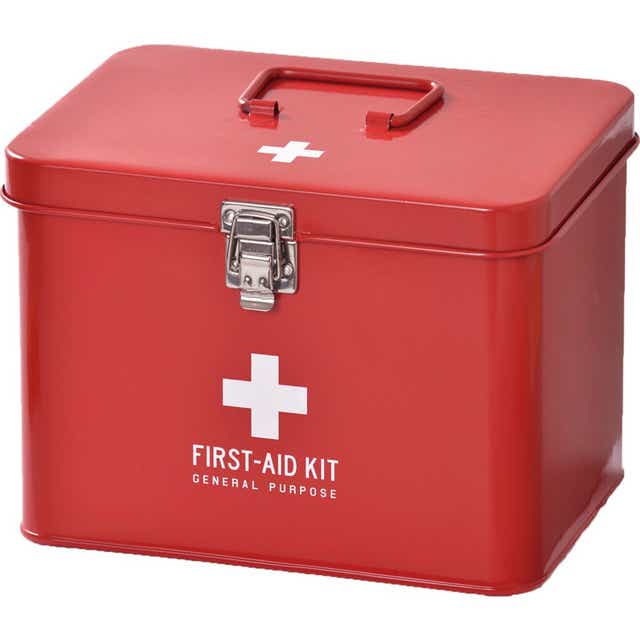 救急箱 おしゃれ 通販 大 スチール 収納ケース 収納ボックス フタ付き 蓋つき 蓋付き 内皿付き 仕切り付き 大容量 ファミリーサイズ かわいい 道具箱 薬箱 防災グッズ 応急処置 応急手当 メディコ ファーストエイドボックス Mサイズ レッド Backyard Family Jre Point